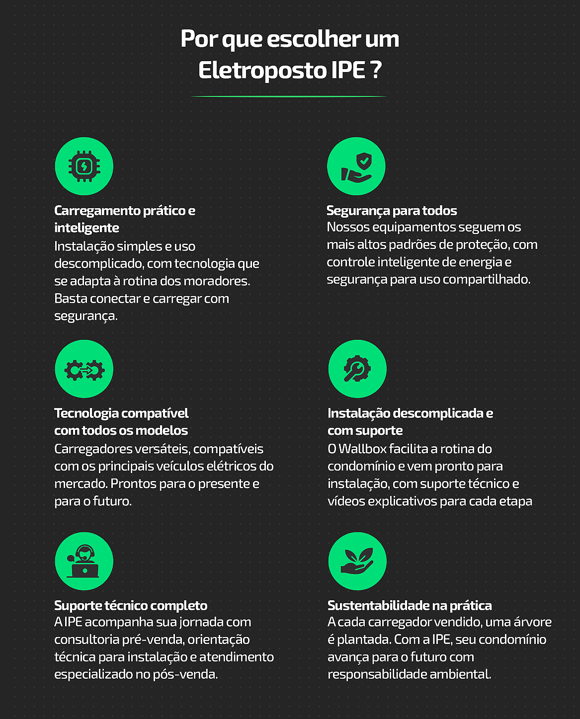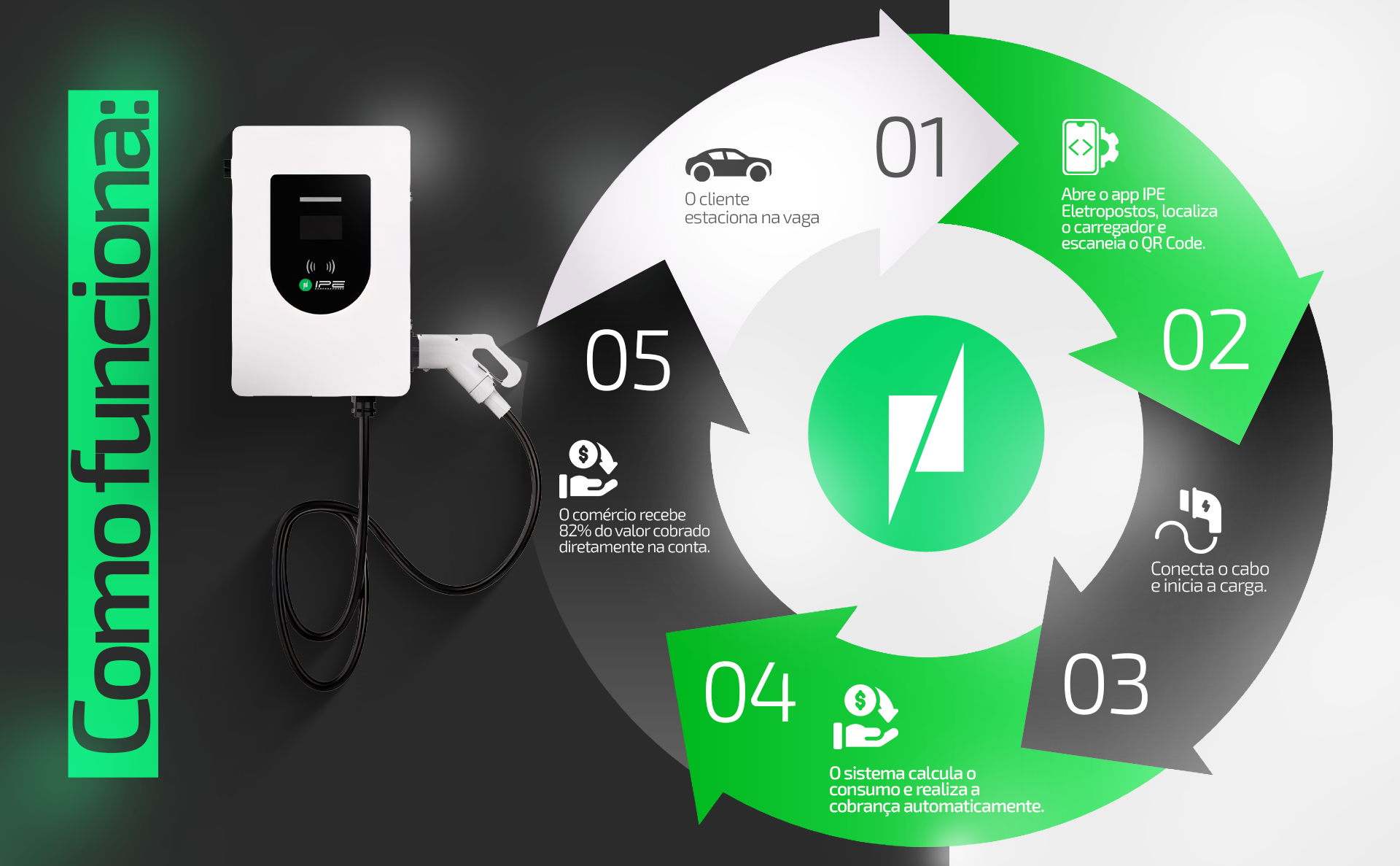 Sem funcionários, sem mensalidades e com instalação simples, o eletroposto da IPE é uma oportunidade de atrair novos clientes, reter os atuais e ainda lucrar com a mobilidade elétrica.