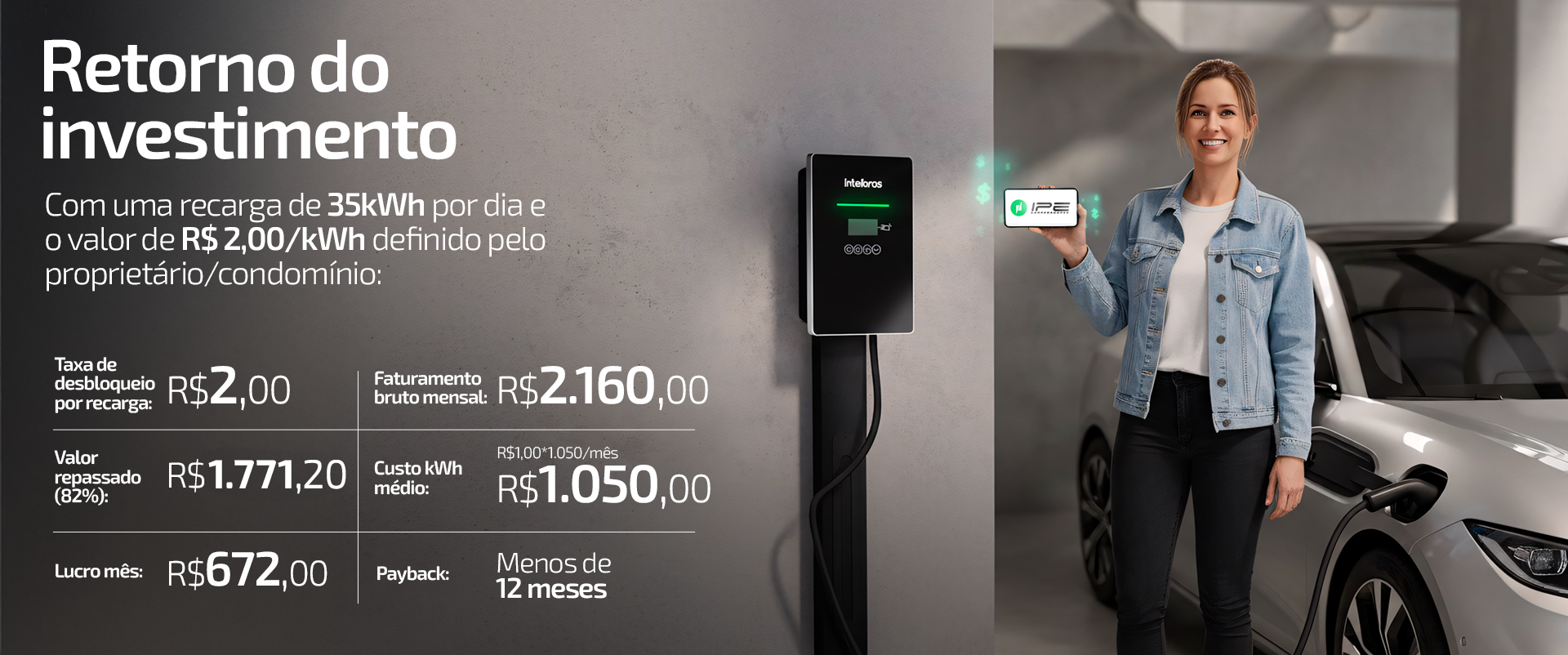 De todo o valor cobrado dos moradores ou clientes pelo uso do carregador, 82% vai direto para o proprietário/condomínio.